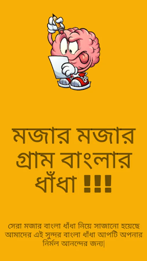 MOJARL BANGLA DHADHA : বাংলা ধাঁধা অ্যাপটিতে গ্রাম বাংলার ধাঁধা গুলো সংগ্রহ করা হয়েছে । বাংলা ধাঁধা ও ধাধার বই অ্যাপটিতে অনেক গুলো ধাধার উত্তর দেওয়া হয়েছে ।
