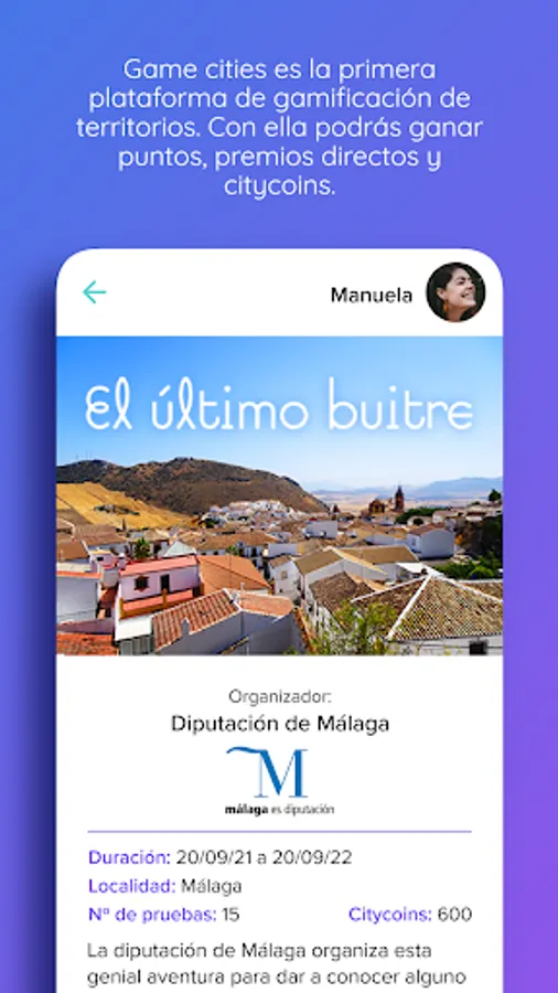 Win direct prizes and drinks by discovering locations with Gamecities. The first app for gamification of territories. Treasure hunts, street escapes, tourist routes, infiltration hunting and much more in an app that favors the development of local commerce and combats depopulation. Game cities is created by municipalities and councils, associations of small businesses and NGOs and is completely free.