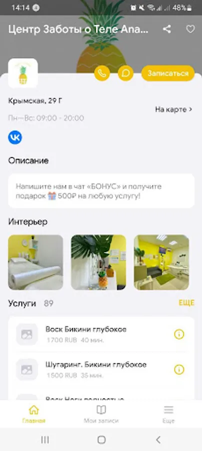 The official mobile application of the Ananas Beauty Center body care studio.