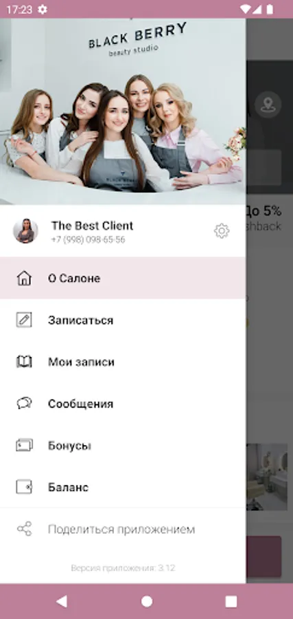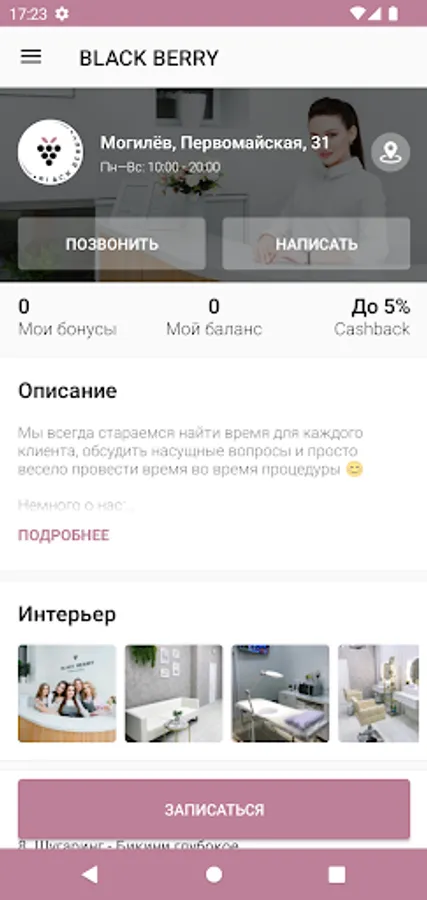 The official mobile application of the Beauty Salon "Black Berry", Mogilev