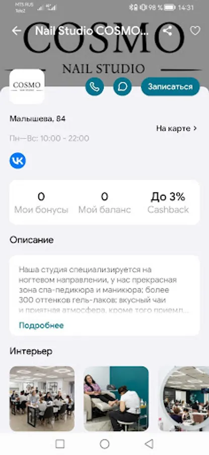 - ознакомиться с подробной информацией о студиях, услугах и мастерах;