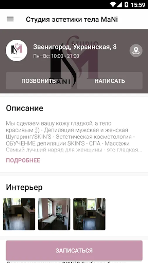 The official mobile application of the studio aesthetics body Maya Nikitina ("MaNi")