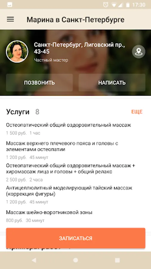 Official mobile app practitioner Master corporal technologies, massage and osteopathy Marina Klimenko.