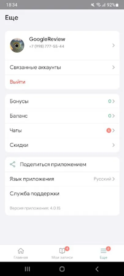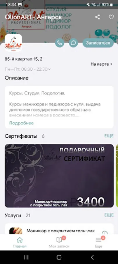 It is possible to register in the application and see all your entries, gift certificates, accumulated points, leave reviews.