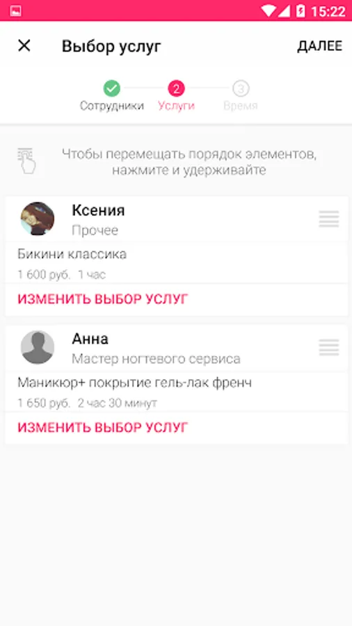 An opportunity to choose a convenient time and a set of manicure, pedicure, eyelash extension and eyebrow correction procedures suitable only for you.