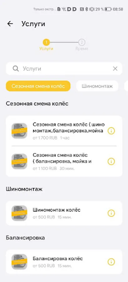 * list of services with cost information