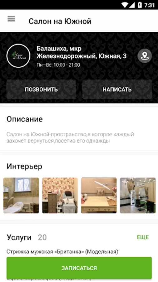 "Salon na Yuzhnaya" will greet you with a cozy atmosphere, courteous treatment, a wide range of services and high professionalism of craftsmen working on high quality materials, but most importantly, with great desire.