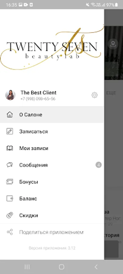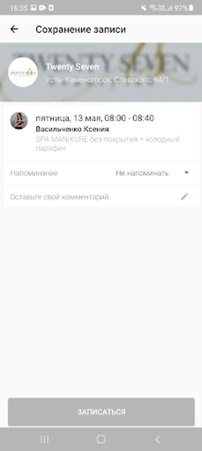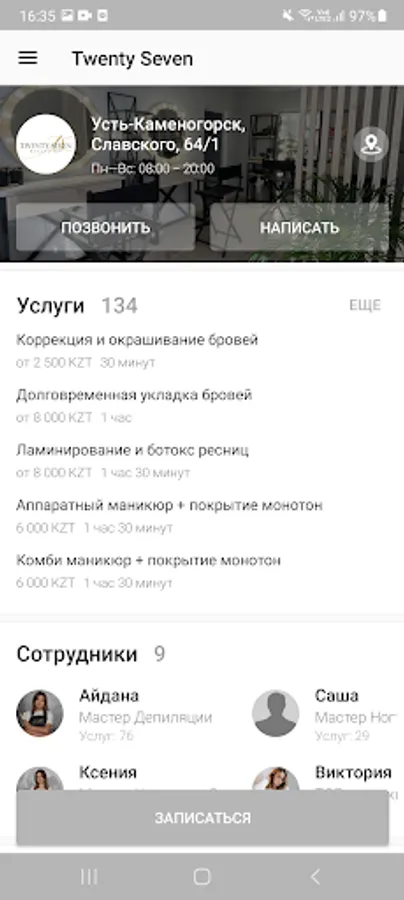 Application for comfortable recording, beauty studio Twenty Seven beauty lab