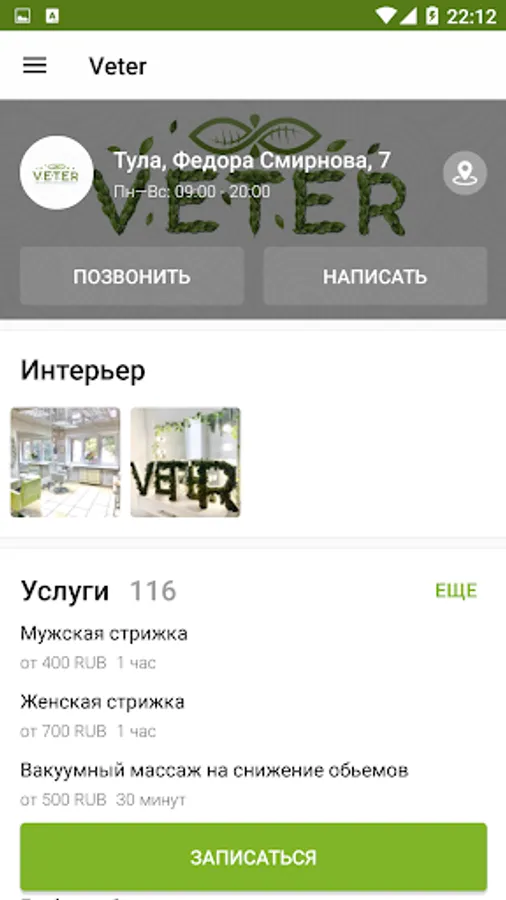 The official application of the beauty studio "Veter"