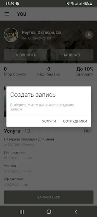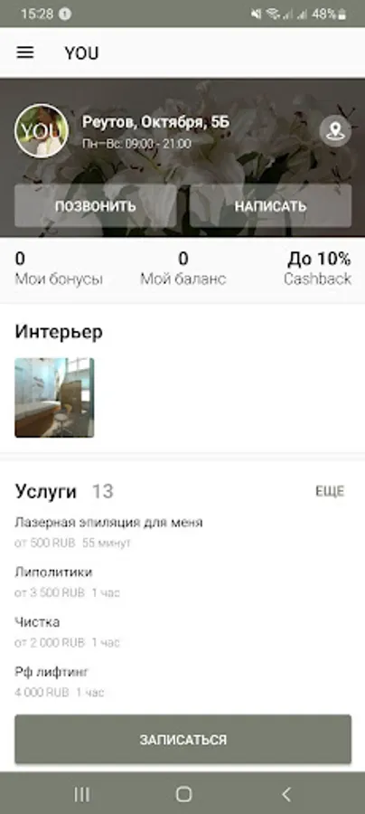 The official mobile application of the studio of laser hair removal and aesthetic cosmetology YOU