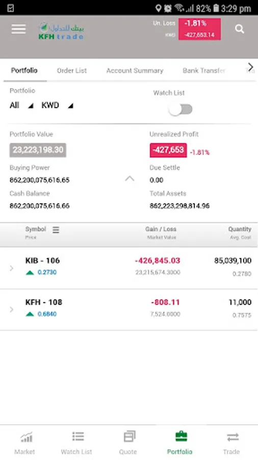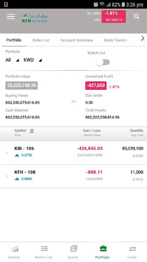 KFHtrade features:
