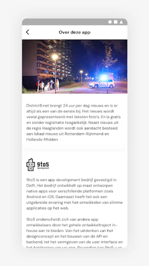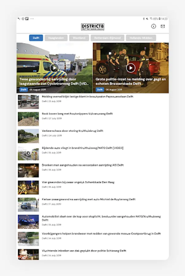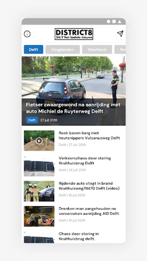 Do you live in Haaglanden, Westland, Midden Delfland, Rotterdam-Rijnmond or Hollands Midden? Then the District8 app is the app that should not be missing on your smartphone or tablet! Through the app you stay informed of what's going on in your area!