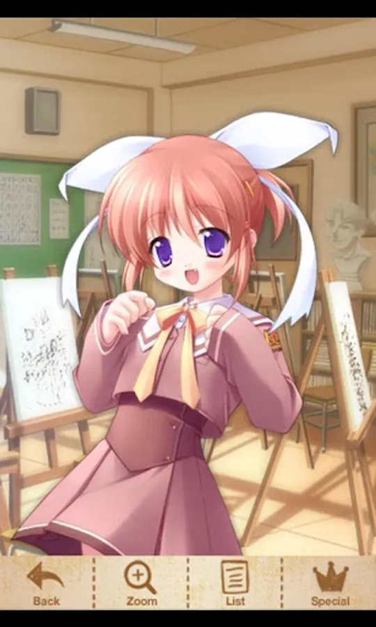 エリスの一年先輩だが、とてもそうは見えない幼い顔立ちの、元気少女。まるで仔犬のように、主人公になついてくる。実はプロの少女小説家で、いつも編集者に追いかけられている。