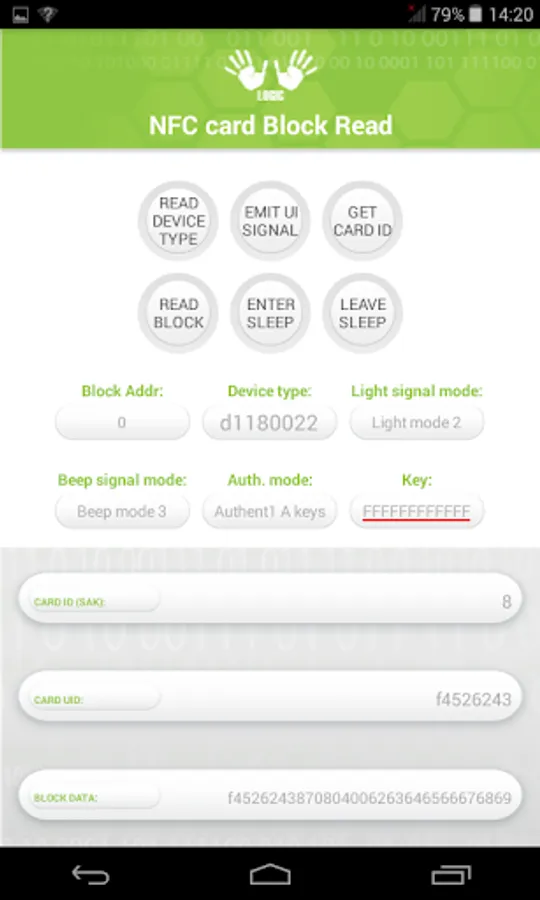 NFC Card Block Reading app developed to be used with Digital Logic Ltd. NFC Readers.