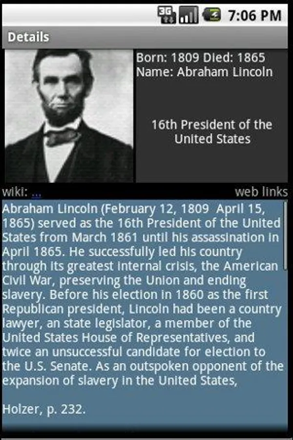 Explore the backgrounds of our founding fathers. This application will allow you to read about individuals who helped frame the constitution of the United States. If you are a student of history, curious about the country, or just an average American, you'll be glad you downloaded this application. Content comes from wik