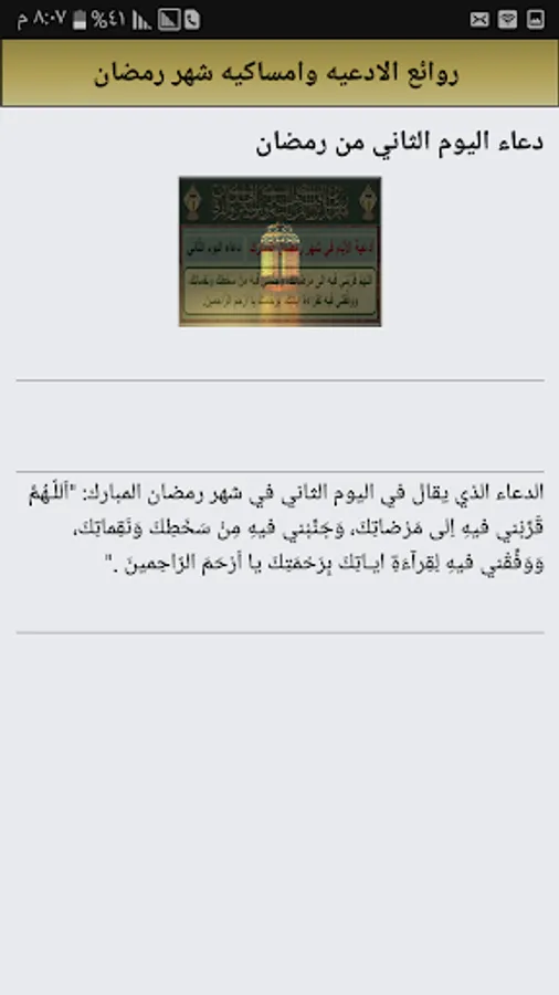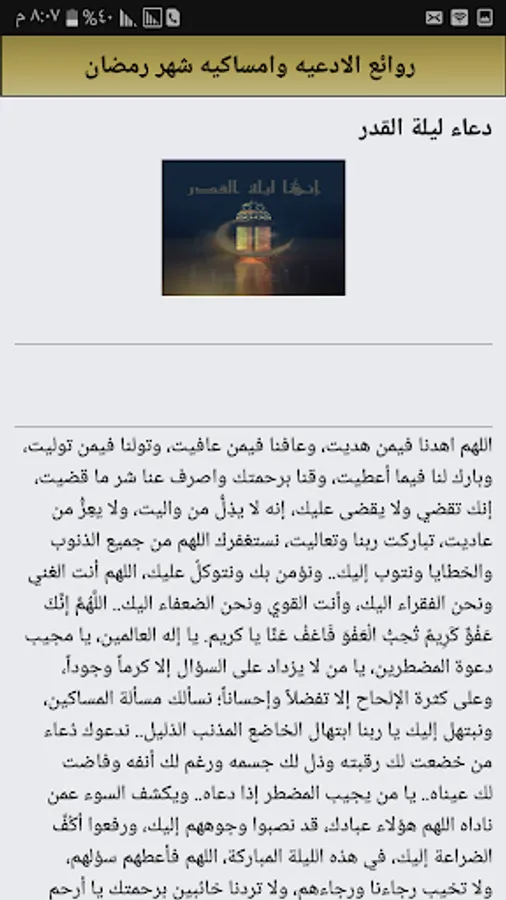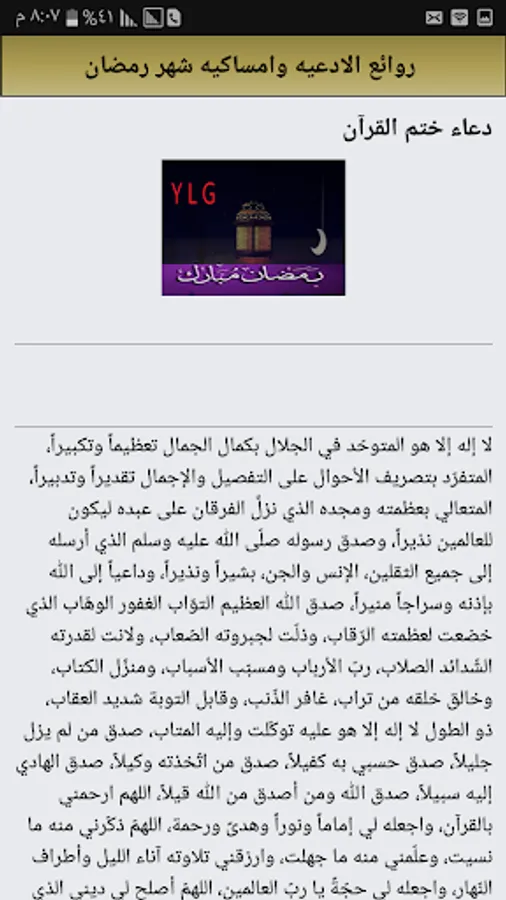 A small application contains the masterpieces of Ramadan and the holy month of Ramadan every year and you are fine. The application contains the blessed supplications for the holy month, such as the prayer of the fasting person, the supplication of the supplication, the supplication of the night and the supplication of the Koran.