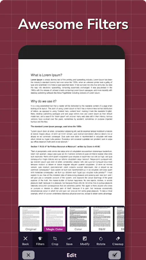 Text recognition - Document scanner app uses OCR technology to recognize and extract text from your scans, making it easy to search, edit, and share your documents.