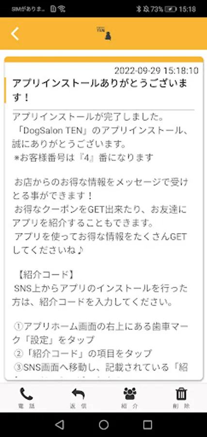 You can introduce DogSalon TEN's app to your friends through SNS.