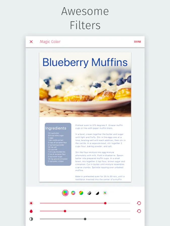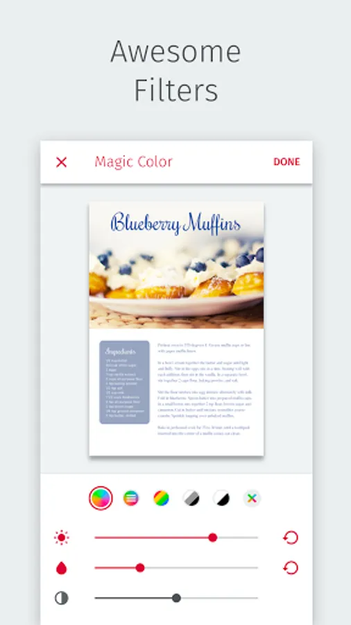 • Enhance your scans: apply color, grayscale or black & white filters with automatic optimization
