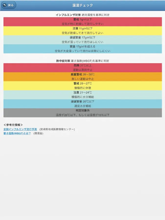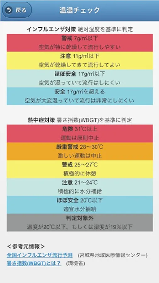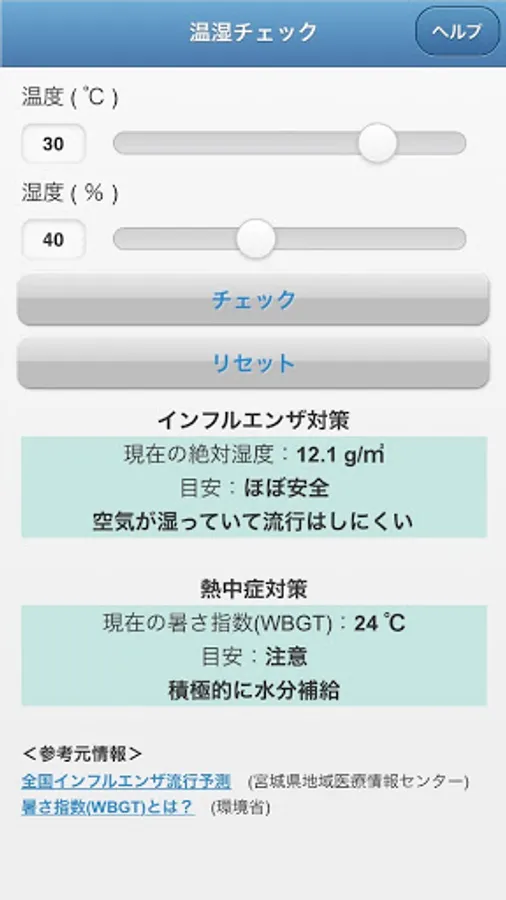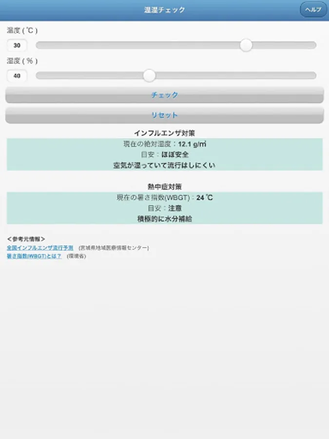 Enter the relative temperature and relative humidity displayed on the thermo-hygrometer into the app to calculate the absolute humidity and heat index (WBGT) to determine the comfort of your room.