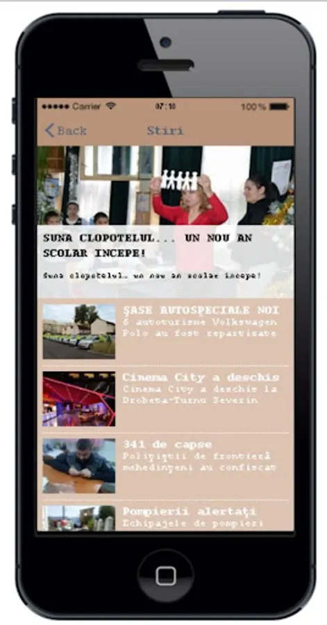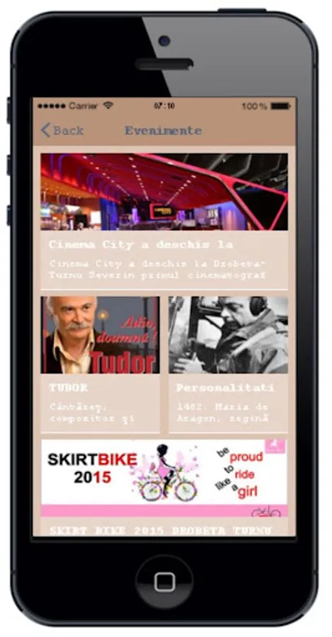 The application Drobeta Turnu Severin. News. Events. Locations. The application contains information in Romanian, English and German.