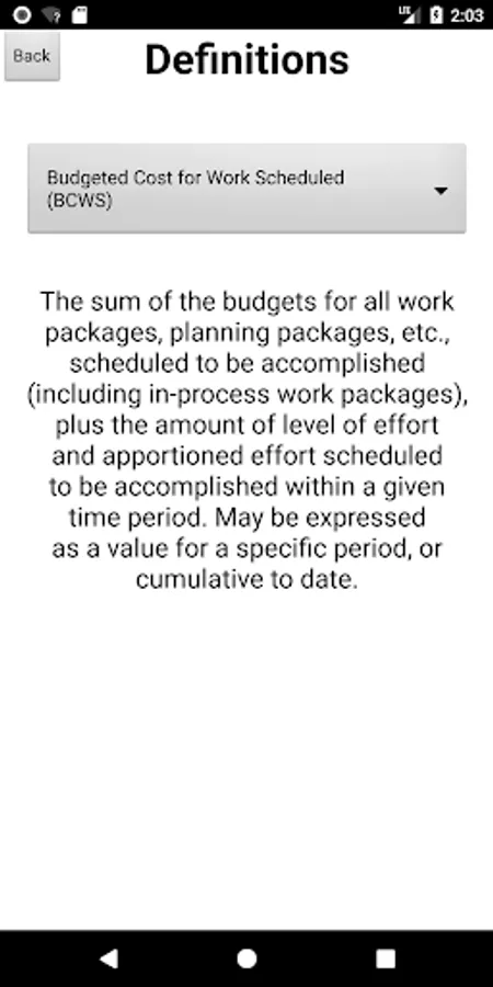 This app provides a handy pocket reference for engineers, logisticians and program managers involved in the Department of Defense's Earned Value Management processes.