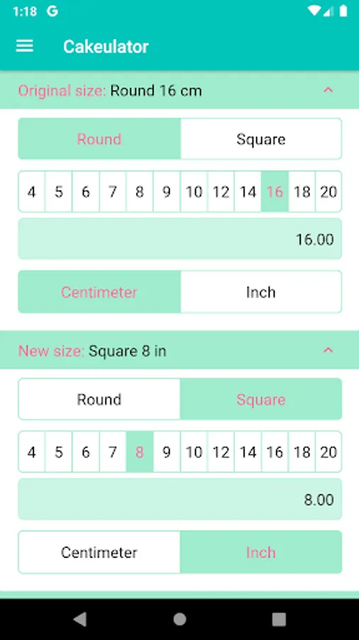 Cakeulator helps you scale up or down a recipe. Just type in the original pan size and the pan size you would like your cake to be. Besides converting measurements, it supports converting from round to square pans.
