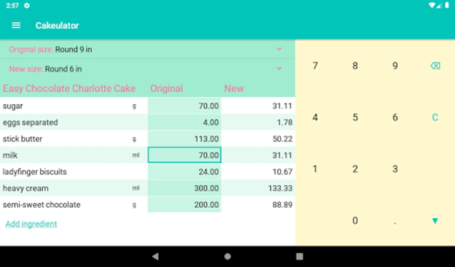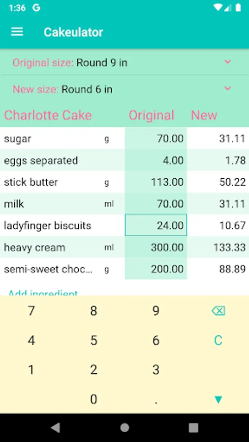 It’s easy to do baking conversions. A recipe converter that supports conversion by ingredient, metric to imperial and vice versa, conversions by weight, volume or mass, and a number of serving adjustments.