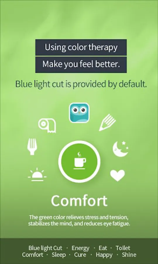 @ 9 modes (Blue Light cut, Healing, Sleep, Cure, Energy, Eat, Toilet, Sunshine, Happy)