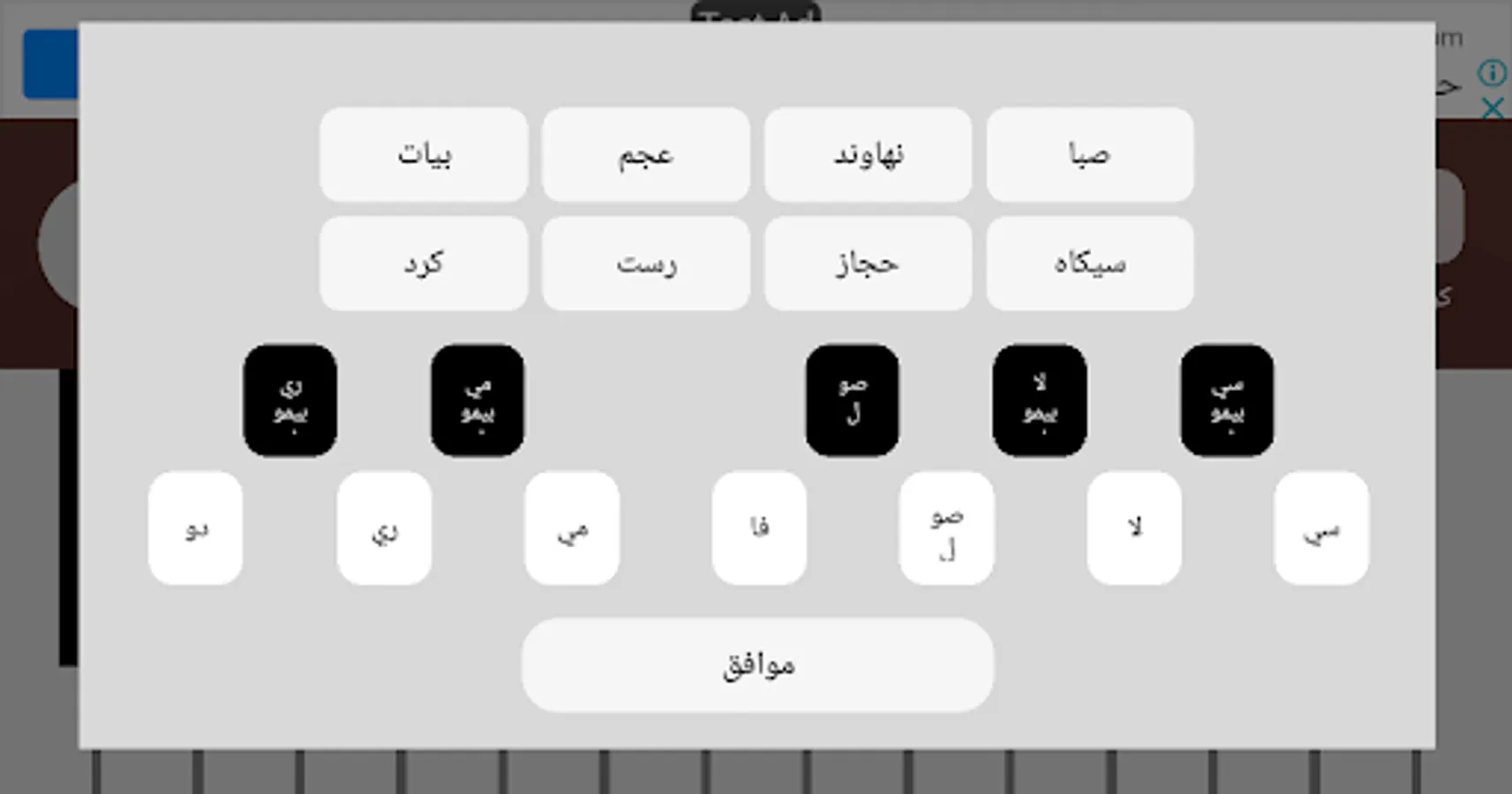 Saba, Nahawand, Ajam, Bayati, Segah, Hijaz, Rast ,Kurd.