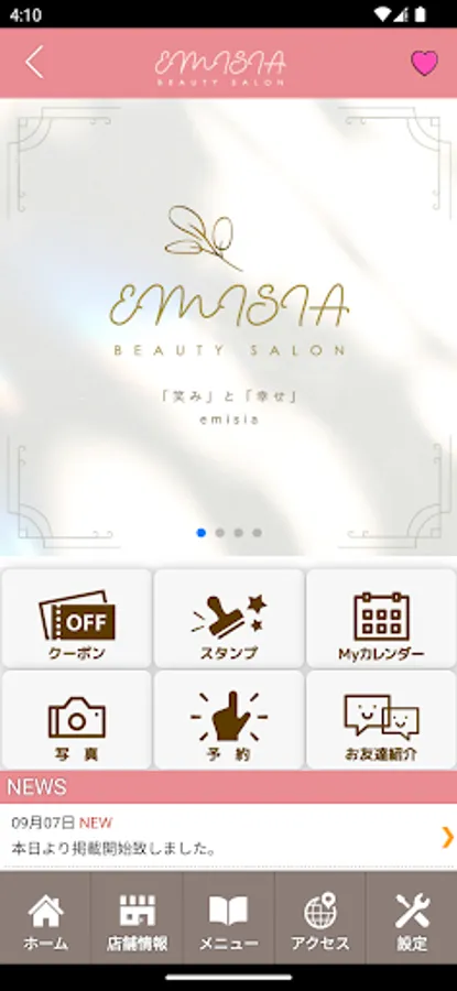 We offer personalized counseling services, including suggestions for courses tailored to your skin type, concerns, and ideal skin, as well as advice on home care. With emisia, you will be able to smile more confidently and spend your days with more happiness...We have chosen the name of our salon to reflect our desire to be a partner who can help you look beautiful.