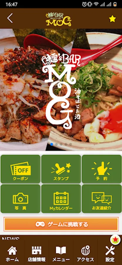 Located in Hitachi City, Ibaraki Prefecture, it is the official app of ramen noodles' s Bar MOG!