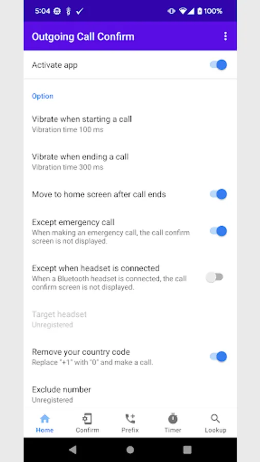 Manually manage "Outgoing Call Confirm" and allow "Auto start", "Start by other apps", and "Run in background".
