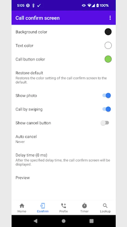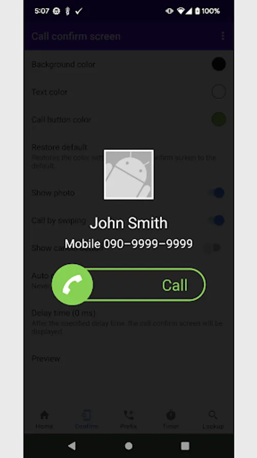 If you do not make a call within the specified number of seconds, the confirm screen will automatically close.