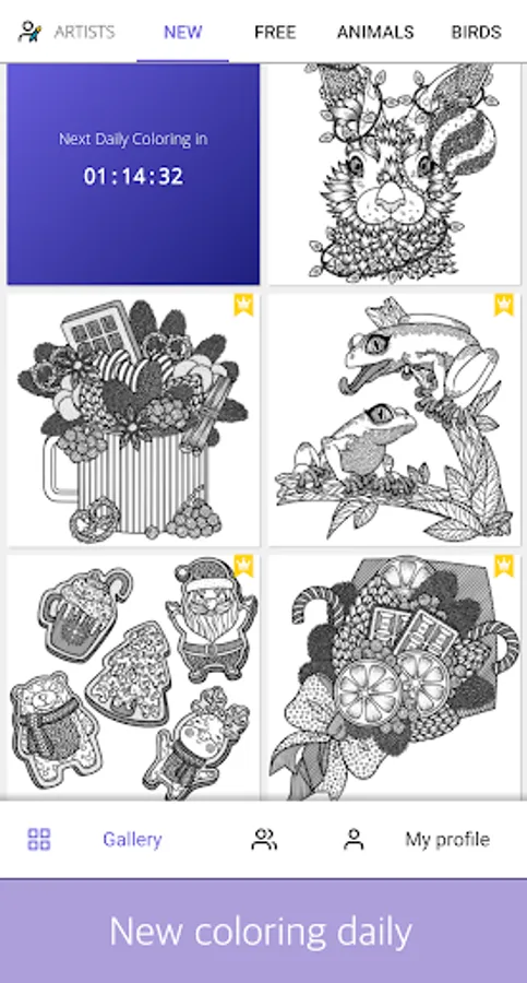 Whether you're looking for simple designs or intricate patterns, our app has something for everyone. With daily new colorings added, you'll never run out of options.