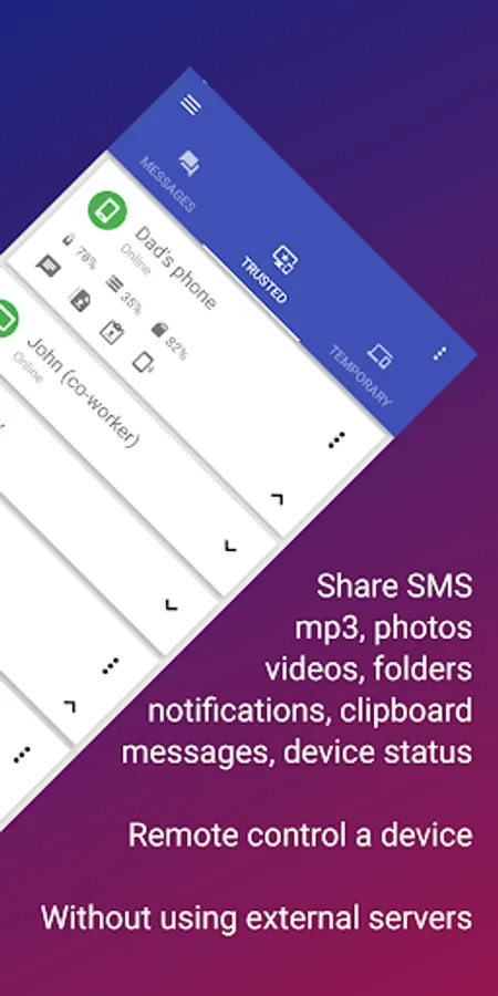 • Safety: end-to-end encryption when you transfer files, send messages and share notifications and clipboard.