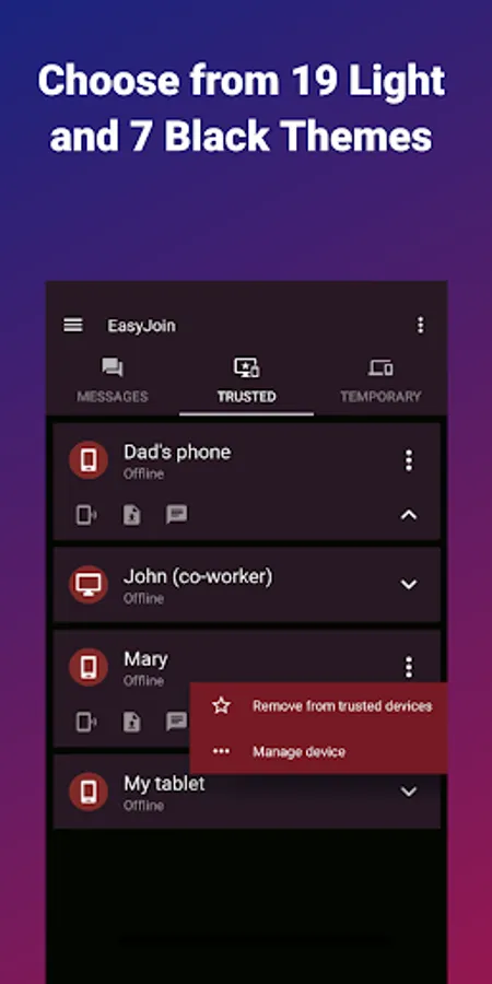 • Messages & Links: send P2P messages and links to one or more devices even when they are offline.