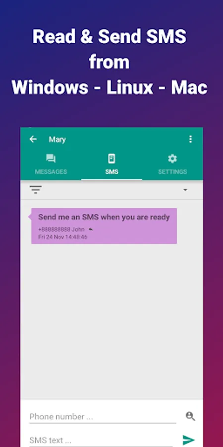 • Phone calls & SMS: read and send SMS / MMS messages from your PC, mac, linux or tablet: there are free applications for all major operating systems. Send to PC a notification regarding a phone call and initiate phone calls from your computer. Auto forward SMS to PC.