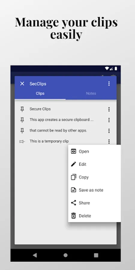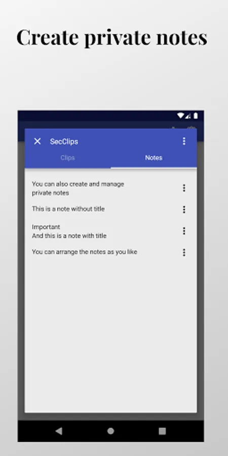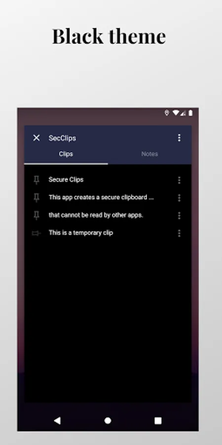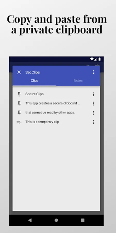 Creates a private clipboard that cannot be read by other apps. You can also create and manage private notes.