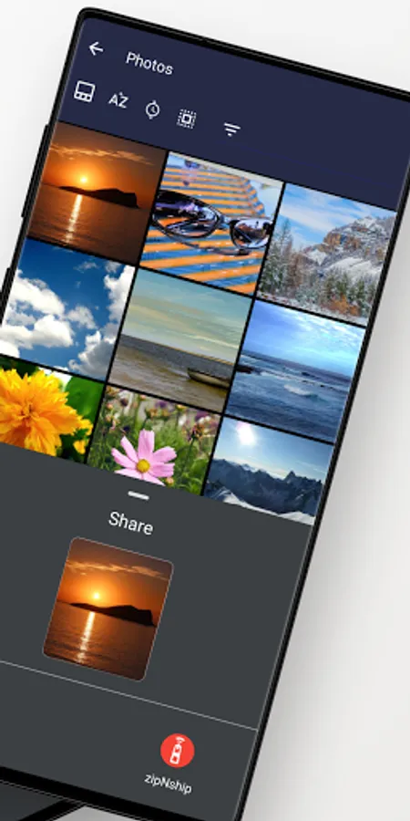 Select files from your favorite file manager or gallery app and share them with zipNship to reduce their size.