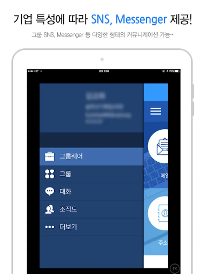Features available on mobile and mobile groupware (mail, calendar, e-payment, bulletin boards, Chart), IM, SNS, this MobiWorks XMPP is available haohni to sign up for the service, Groupware wish to subscribe, please contact us.