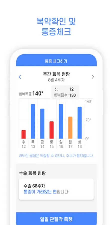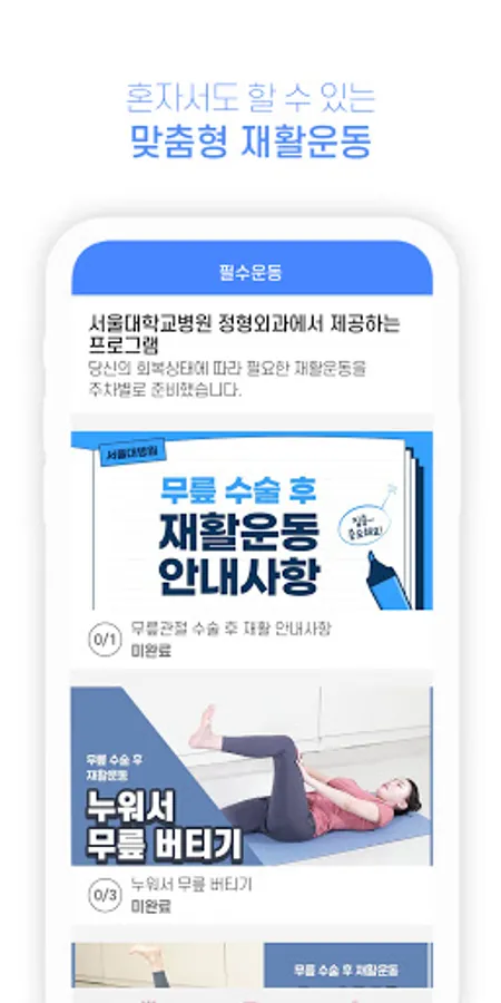 It contains all the functions for quick recovery of patients, from rehabilitation exercise after surgery to pain check and medication check. The patient's recovery data is shared in real time with the medical staff and registered guardians.