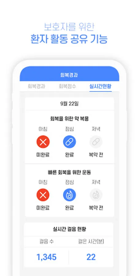 If you can't take care of the patient yourself, don't worry. If you are registered as a guardian, you can check medication, precautions during recovery, and whether or not the patient has rehabilitation exercise in real time.