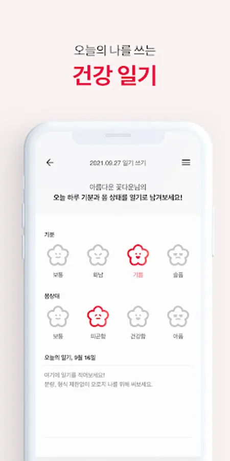 -Health Diary: You can record your mood, physical condition, nutritional intake check, and journal writing today.