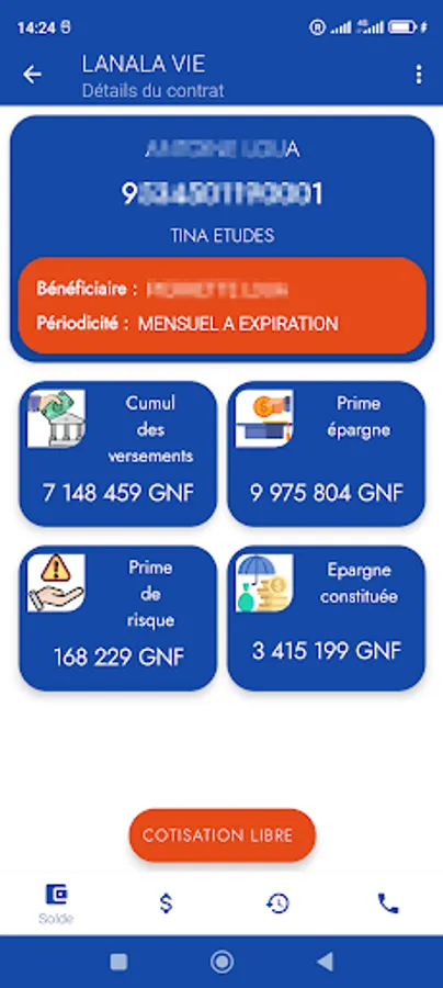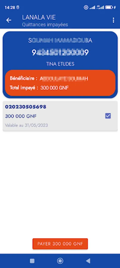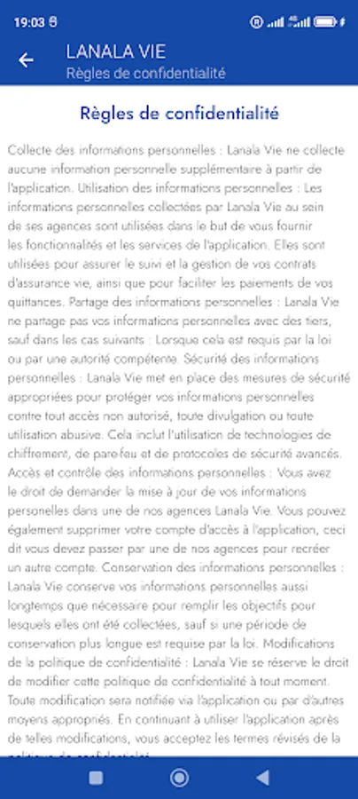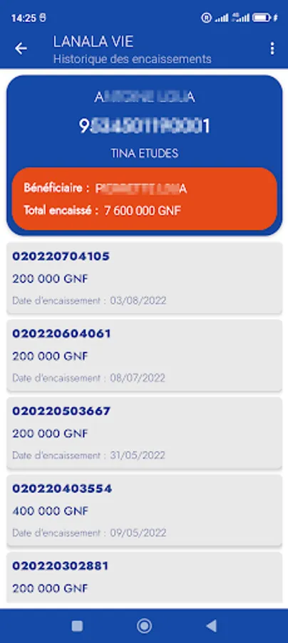 Simplified payment of receipts: Forget the hassle of paying your life insurance receipts. With Lanala Vie, you can pay your contributions directly from the application, using secure payment methods. Save time and energy by avoiding unnecessary trips.