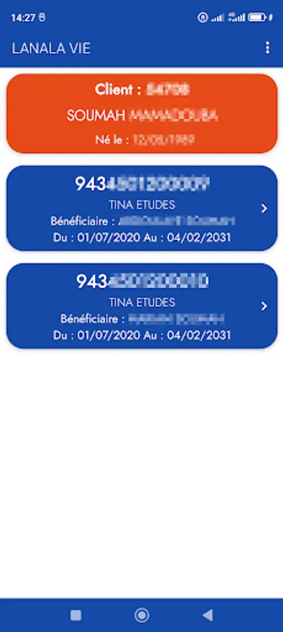Welcome to Lanala Vie, the innovative mobile application that allows you to follow in real time all your contributions on life insurance contracts taken out with Lanala Assurances Vie. With Lanala Vie, easily manage your life insurance policies and make your receipt payments in a few clicks, without having to travel.