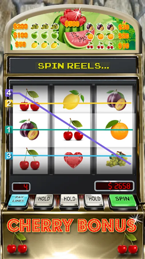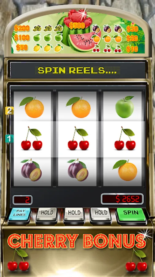 The game simulates the operation of a casino slot machine, this game does not offer the possibility of winning cash. This slot does not use on-line server, everything is done offline on your terminal. The cherry slots have the characteristic symbol of the cherry. This is one of the oldest symbols of the history of slots, already present in the famous "Liberty Bell", the first slot machine in history.