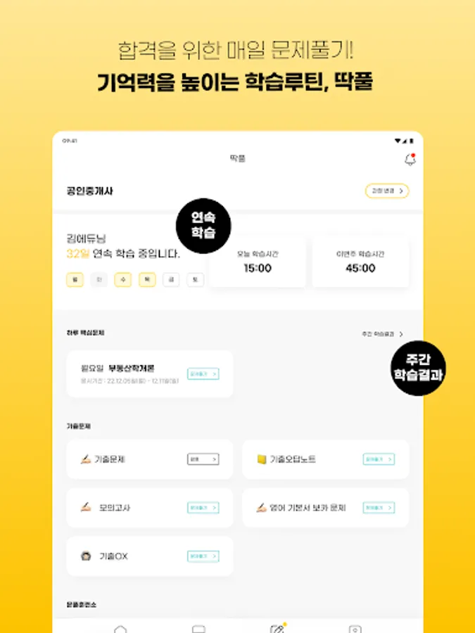 Provides high-quality lectures, free special lectures, past problems, mock tests, study records, and timer functions.