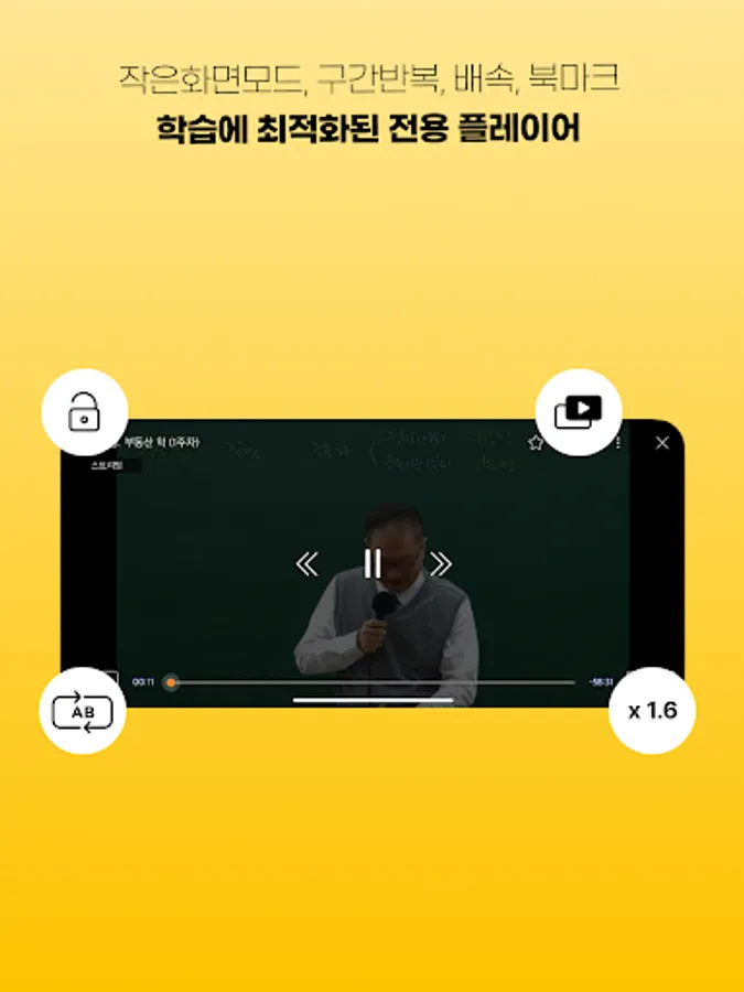 - Supports PIP mode that allows you to use your cell phone freely while watching lectures