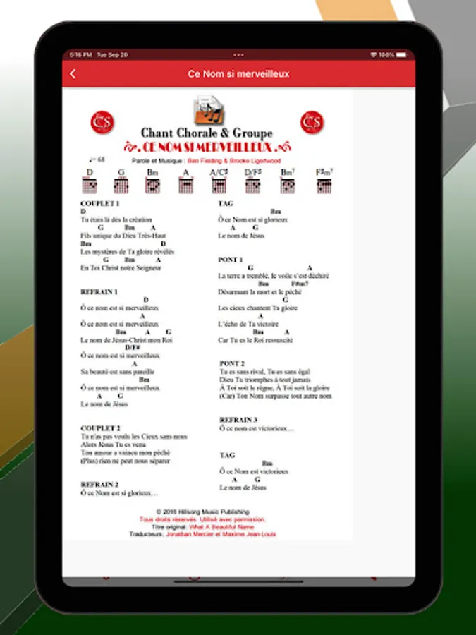 Chant Chorale et Groupe is an electronic version of Chants d'Espérance Special Edition Revue, corrected and increased with a more user-friendly interface and very useful functionalities.